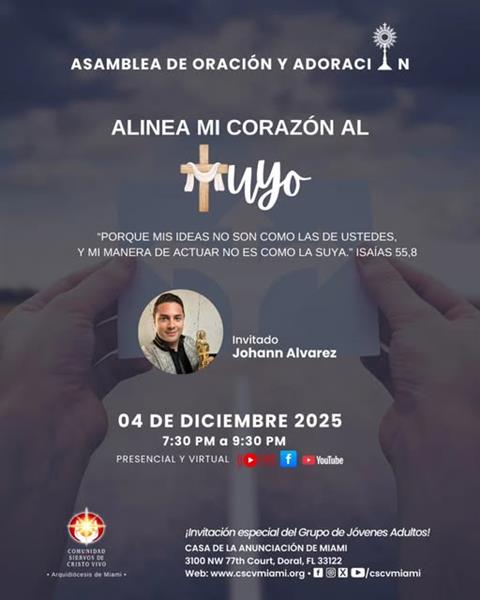 Un encuentro para profundizar con los planes que Dios tiene con cada uno - Johan Alvarez, cantautor católico Dec 4 *** Gratis *** Requisito Ninguno